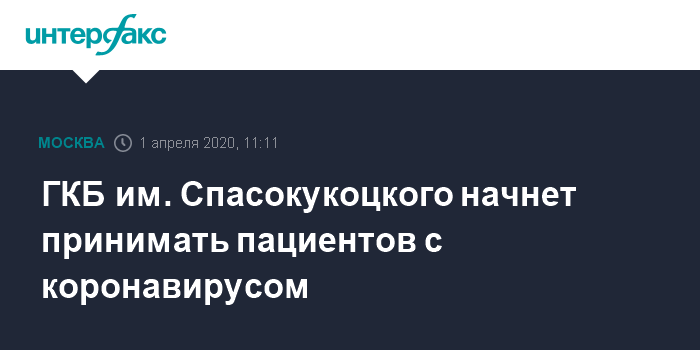 ГКБ им. Спасокукоцкого начнет принимать пациентов с коронавирусом