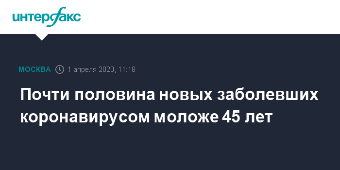 Почти половина новых заболевших коронавирусом моложе 45 лет