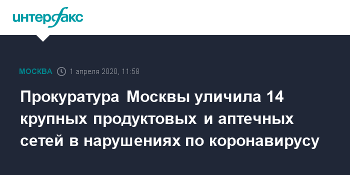 Прокуратура Москвы уличила 14 крупных продуктовых и аптечных сетей в нарушениях по коронавирусу