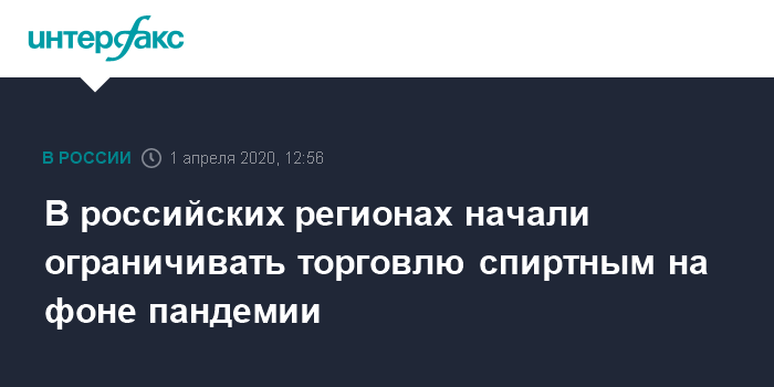 Ранее в среду стало известно, что торговлю спиртным также ограничили с Башкирии. Местные власти запретили продавать спиртное с 18:00 до 10:00, в том числе в учреждениях общепита. Ограничение вводится с 1 апреля на период самоизоляции.