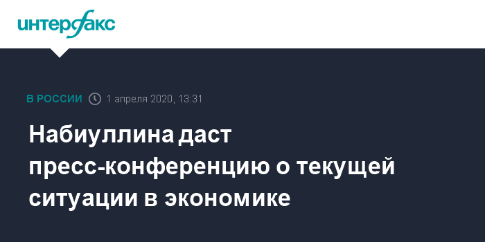 Москва. 1 апреля. INTERFAX.RU - Банк России пообещал провести онлайн серию еженедельных пресс-конференций о текущией ситуации и мерах по стабилизации экономики. Первую председатель ЦБ Эльвира Набиуллина проведет в пятницу, 3 апреля, в 15:00.
