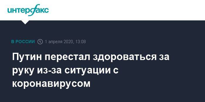 Москва. 1 апреля. INTERFAX.RU - Президент РФ Владимир Путин, естественно, изменил манеру приветствия и сейчас не здоровается за руку при личных встречах, сказал пресс-секретарь главы государства Дмитрий Песков.