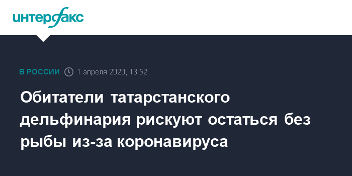Москва. 1 апреля. INTERFAX.RU - Шесть дельфинов и четыре морских котика дельфинария в Набережных Челнах (Татарстан) переживают трудные времена, компания осталась без заработка и вынуждена просить о поставках рыбы и соли для животных в долг.