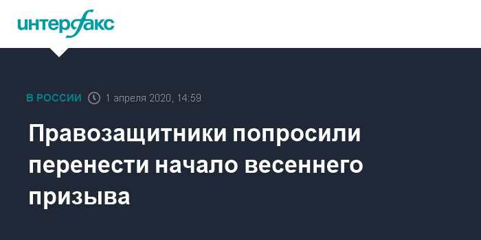 Москва. 1 апреля. INTERFAX.RU - Правозащитники просят перенести начало весеннего призыва в армию для предотвращения распространения нового коронавируса, говорится в их обращении на сайте правозащитного центра "Мемориал".