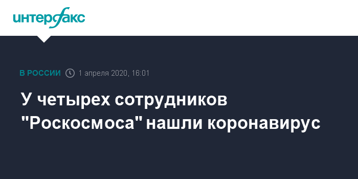 Москва. 1 апреля. INTERFAX.RU - У четырех сотрудников госкорпорации "Роскосмос" нашли коронавирс, сообщила корпорация в среду.