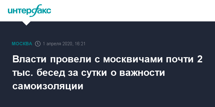 Власти провели с москвичами почти 2 тыс. бесед за сутки о важности самоизоляции