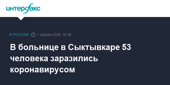 Москва. 1 апреля. INTERFAX.RU - В больнице Эжвинского района Сыктывкара у 53 человек подтверждено заражение коронавирусом, за последние сутки там подтвердили 32 заражения, сообщила пресс-служба главы Коми Сергея Гапликова. Больница уже закрыта на двухнедельный карантин.