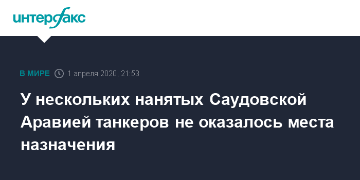 Москва. 1 апреля. INTERFAX.RU - Некоторые танкеры, нанятые Саудовской Аравией для перевозки нефти, не имеют места назначения, сообщает Dow Jones со ссылкой на источники.