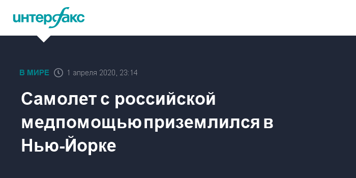 Москва. 1 апреля. INTERFAX.RU - Самолет ВКС РФ с грузом медицинской помощи совершил посадку в международном аэропорту имени Джона Кеннеди в Нью-Йорке в среду вечером, следует из мониторинговых данных западных авиационных ресурсов.