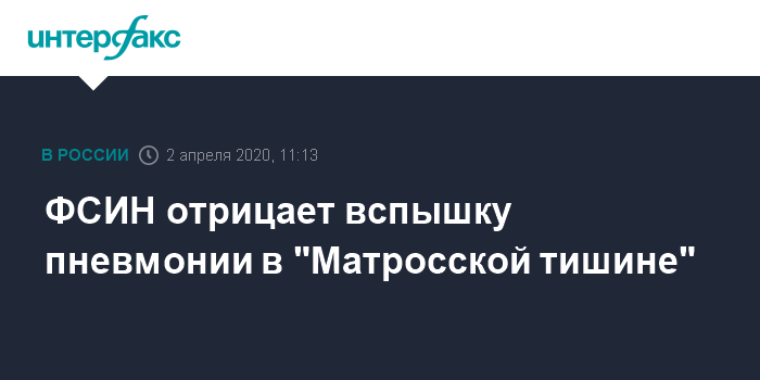 Москва. 2 апреля. INTERFAX.RU - Московское управление ФСИН отрицает заявления правозащитников о вспышке пневмонии в СИЗО "Матросская тишина" и сообщает, что арестованные пока не болеют.