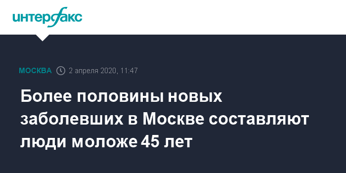 Более половины новых заболевших в Москве составляют люди моложе 45 лет