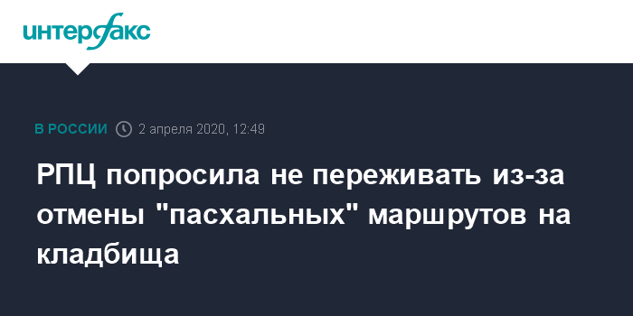 По его мнению, с учетом нынешней ситуации решение властей не пускать на Пасху автобусы в сторону кладбищ - вполне разумная и понятная мера. Всем, кто привык навещать могилы именно в эти дни, представитель Московской епархии предложил немного подождать, когда снимут все ограничения, и уже после этого ехать на кладбища.