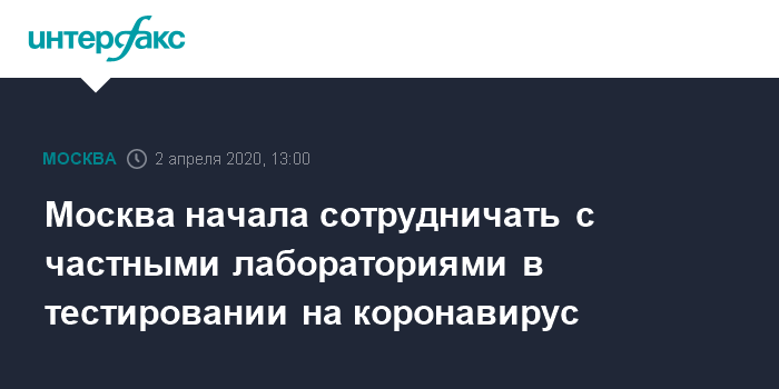 "Правительство Москвы заключило соглашение с частной лабораторией "Гемотест", которая будет выполнять исследования на коронавирусную инфекцию для медицинских организаций города", - сказала Ракова журналистам в четверг.
