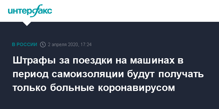 Штрафы за поездки на машинах в период самоизоляции будут получать только больные коронавирусом