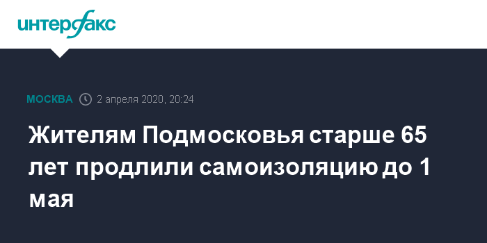 Жителям Подмосковья старше 65 лет продлили самоизоляцию до 1 мая