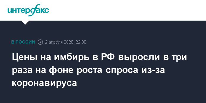 По данным аналитиков ОФД "Такском", еще 27 марта средняя цена на корень имбиря составляла 518,7 рубля за килограмм, а к 31 марта она выросла почти в три раза, до 1 тыс. 525,72 рубля за килограмм. На 1 марта цена составляла 340,25 рубля за килограмм.