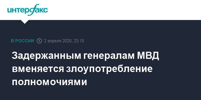 Задержанным генералам МВД вменяется злоупотребление полномочиями