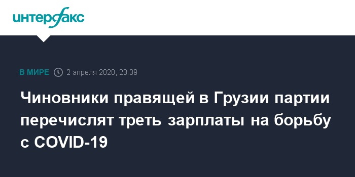 Чиновники правящей в Грузии партии перечислят треть зарплаты на борьбу с COVID-19