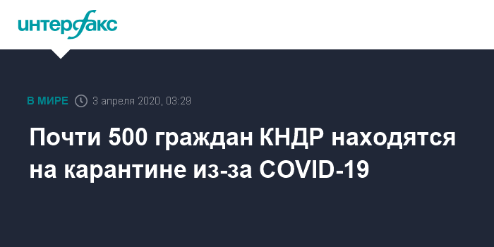 Москва. 3 апреля. INTERFAX.RU - Около 500 человек остаются на карантине по всей КНДР, сообщает ЦТАК.