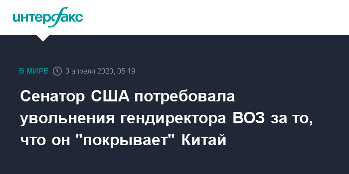 Сенатор США потребовала увольнения гендиректора ВОЗ за то, что он "покрывает" Китай