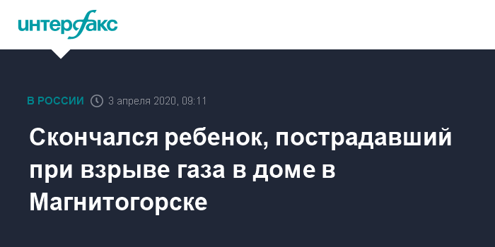 Скончался ребенок, пострадавший при взрыве газа в доме в Магнитогорске