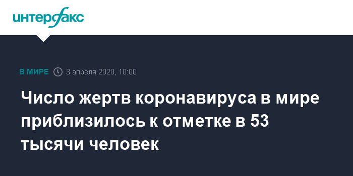 Число жертв коронавируса в мире приблизилось к отметке в 53 тысячи человек