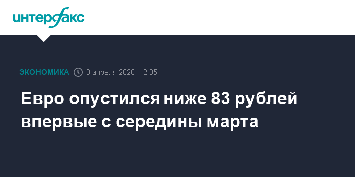 Москва. 3 апреля. INTERFAX.RU - Доллар США и евро ускорили снижение на Московской бирже днем в пятницу. При этом курс евро упал ниже 83 руб. впервые с 17 марта, курс доллара опустился ниже 77 руб. впервые с 18 марта.