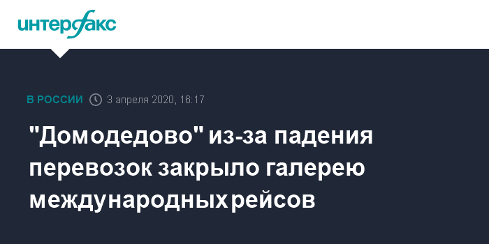 Москва. 3 апреля. INTERFAX.RU - "Домодедово" на фоне падения рынка авиаперевозок из-за COVID-19 закрыло галерею международных вылетов.
