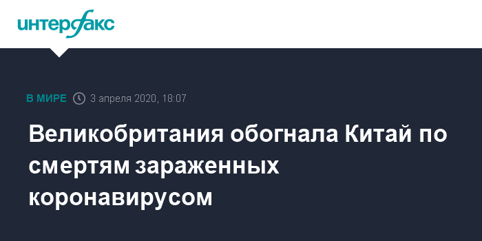 По данным университета Джонса Хопкинса, который ведет статистику заболеваемости, Британия по числу погибших обогнала Китай, где умерли 3326 заразившихся. Рост заболеваемости и смертности ускоряется.