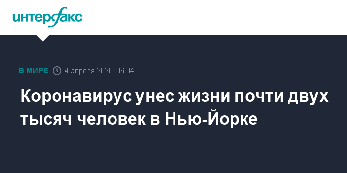 Москва. 4 апреля. INTERFAX.RU - Количество умерших в городе Нью-Йорке приближается к 2 тысячам, сообщается на сайте мэрии.