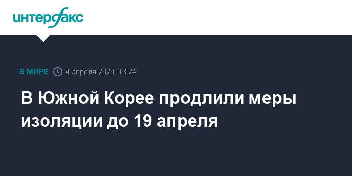 В Южной Корее продлили меры изоляции до 19 апреля