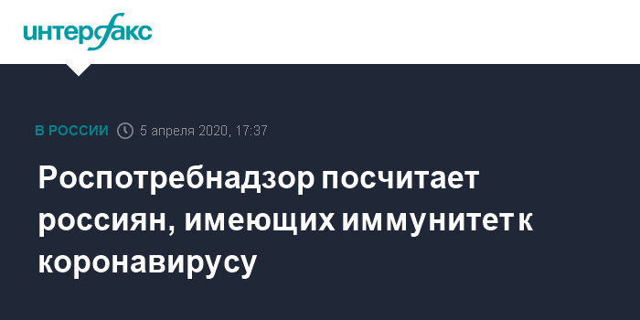 Москва. 5 апреля. INTERFAX.RU - Роспотребнадзор намерен провести исследование на количество уже получивших иммунитет к коронавирусу россиян, заявила глава ведомства Анна Попова.