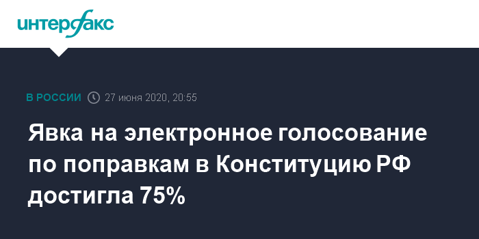 Явка на электронное голосование по поправкам в Конституцию РФ достигла 75%