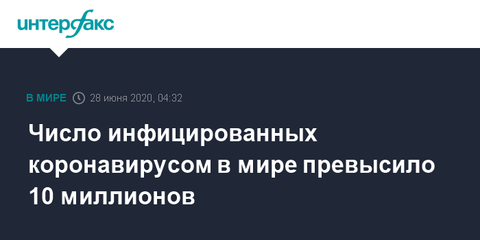 Число инфицированных коронавирусом в мире превысило 10 миллионов