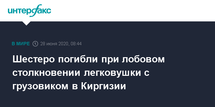 Москва. 28 июня. INTERFAX.RU - Шесть человек погибли в аварии на автодороге Бишкек-Ош в Киргизии, сообщили "Интерфаксу" в пресс-службе МЧС республики.