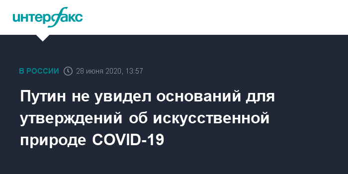 Путин не увидел оснований для утверждений об искусственной природе COVID-19