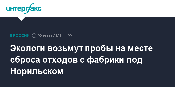 Москва. 28 июня. INTERFAX.RU - Специалисты возьмут пробы воды на месте сброса жидких отходов с обогатительной фабрики под Норильском, сообщил "Интерфаксу" в воскресенье информированный источник.