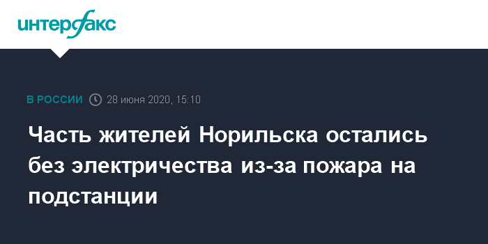 Москва. 28 июня. INTERFAX.RU - Пожар на главной понизительной подстанции (ГПП) оставил без энергоснабжения часть жителей Норильска и коронавирусный обсерватор, говорится в сообщении Минэнерго России.