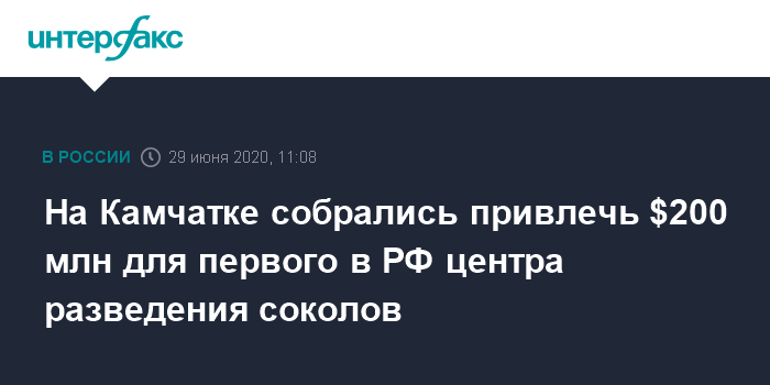 "Фонд Росконгресс и его инвестиционное подразделение - Фонд "РК-Инвестиции" привлекут около $200 млн прямых иностранных инвестиций в экономику Камчатского края путем создания первого в России соколиного центра международного уровня на Камчатке", - сообщает Фонд.