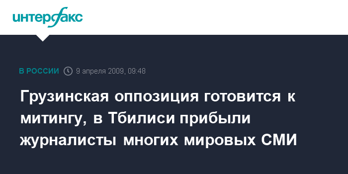 Москва. 9 апреля. INTERFAX.RU - Митинг грузинской оппозиции с требованием отставки президента Михаила Саакашвили, запланированный на четверг, планируют освещать представители многих мировых СМИ.