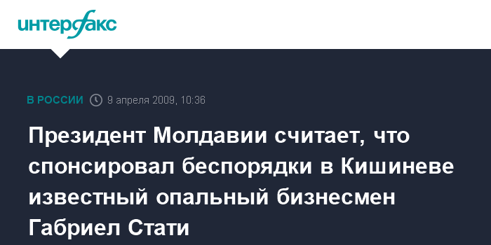 Президент Молдавии считает, что спонсировал беспорядки в Кишиневе известный опальный бизнесмен Габриел Стати