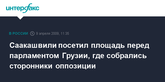 Москва. 9 апреля. INTERFAX.RU - Президент Грузии Михаил Саакашвили в четверг посетил площадь перед зданием парламента, где находятся лидеры оппозиции и где через несколько часов начнется митинг их сторонников.