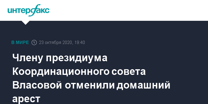Москва. 23 октября. INTERFAX.RU - Члену президиума Координационного совета белорусской оппозиции Лилии Власовой отменили домашний арест.