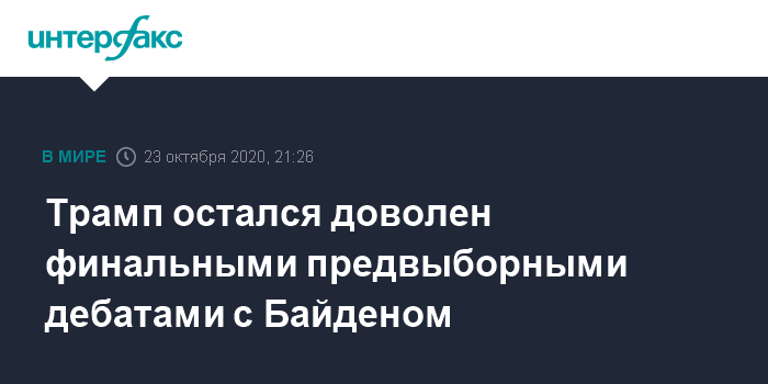 Москва. 23 октября. INTERFAX.RU - Президент США Дональд Трамп заявил, что дебаты с его оппонентом, кандидатом от демократов Джо Байденом прошли успешно.