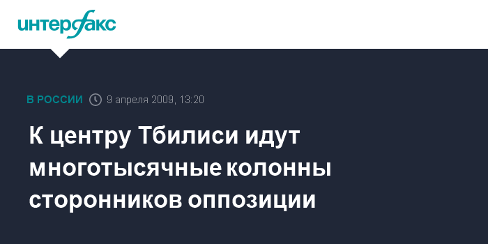 Как передает корреспондент "Интерфакса" с места событий, центральные улицы в Тбилиси уже перекрыты, и колонны с тысячами людей с разных концов города направляются к площади перед парламентом. Во главе одной из колонн находится экс-спикер парламента Нино Бурджанадзе. Она заявила журналистам, что людей на митинге будет очень много. "Наше требование неизменно, мы требуем отставки президента. Уверена, что эксцессов со стороны оппозиции не будет, но в отношении властей у меня такой уверенности нет", - сказал Н.Бурджанадзе.