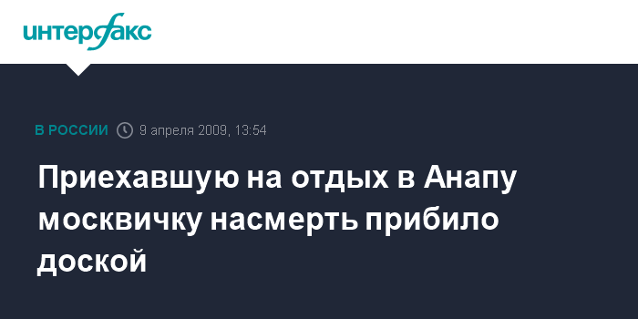 Москва. 9 апреля. INTERFAX.RU - Следственный отдел по Анапе (Краснодарский край) проводит проверку по факту смерти 82-летней жительницы Москвы, которая приехала на отдых в курортный город и погибла от удара доской, оторвавшейся от строительных лесов.