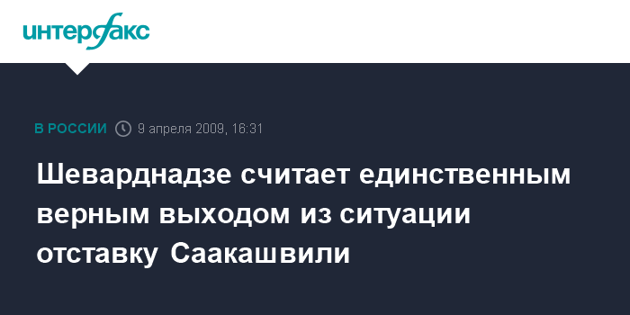 В связи с этим Шеварднадзе подчеркнул, что "единственным верным выходом из ситуации является добровольная отставка Саакашвили".