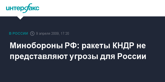 Минобороны РФ: ракеты КНДР не представляют угрозы для России