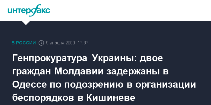 Генпрокуратура Украины: двое граждан Молдавии задержаны в Одессе по подозрению в организации беспорядков в Кишиневе