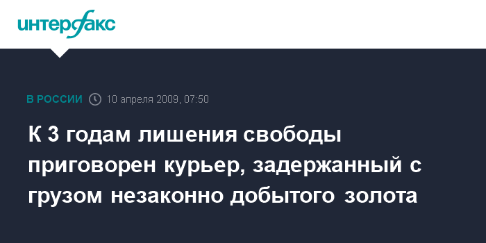 К 3 годам лишения свободы приговорен курьер, задержанный с грузом незаконно добытого золота